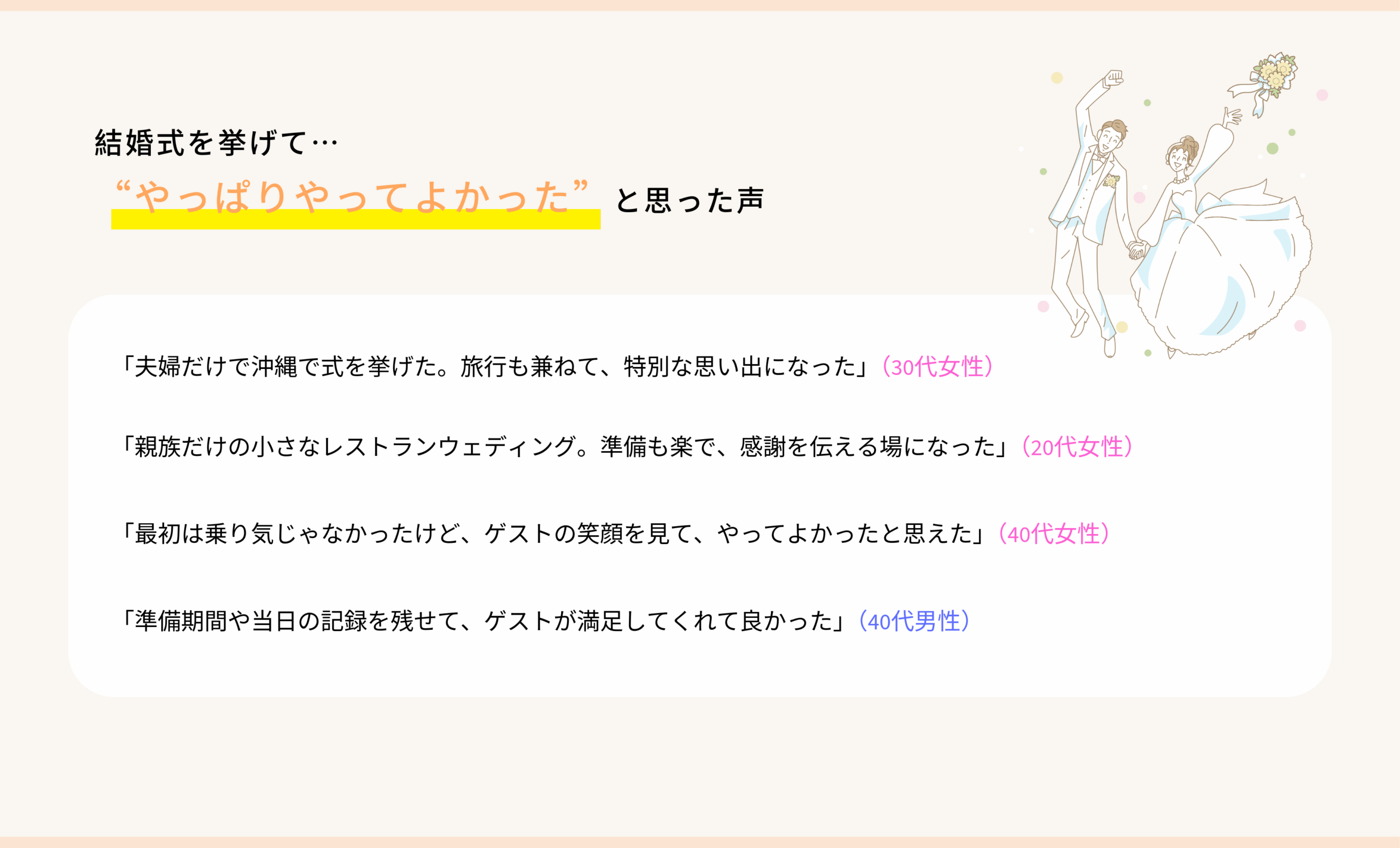 挙げた後に「やってよかった」と感じた理由をご紹介します。