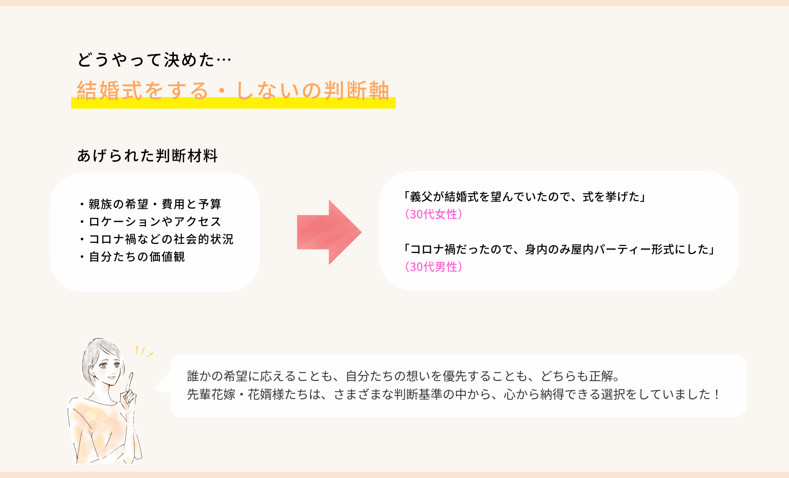 先輩花嫁・花婿様たちは、さまざまな判断基準の中から、