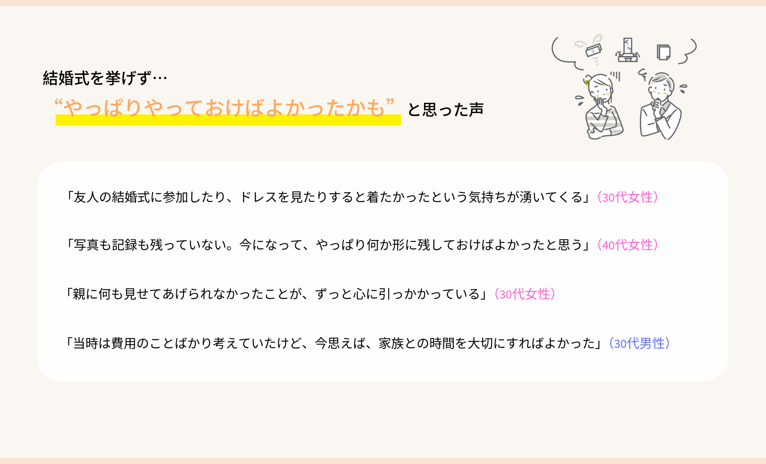 このように、結婚式をしなかったことへの後悔は、