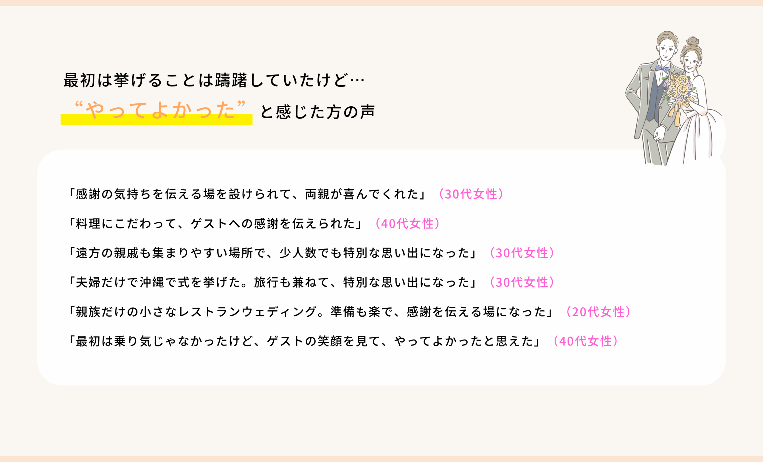 実際に、最初は結婚式に消極的だった人たちが、