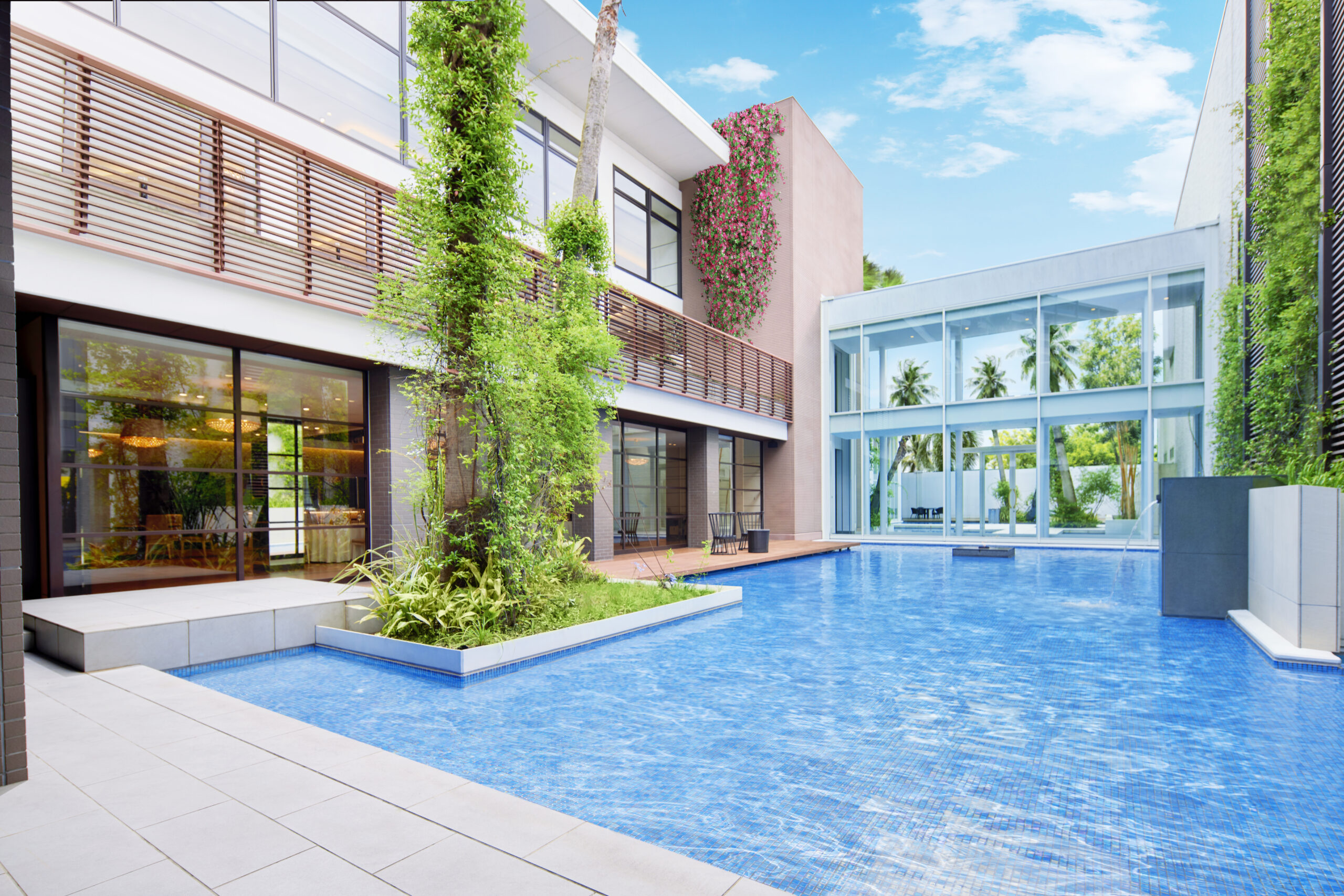中四国エリアで最大級のプールを備えた敷地は、