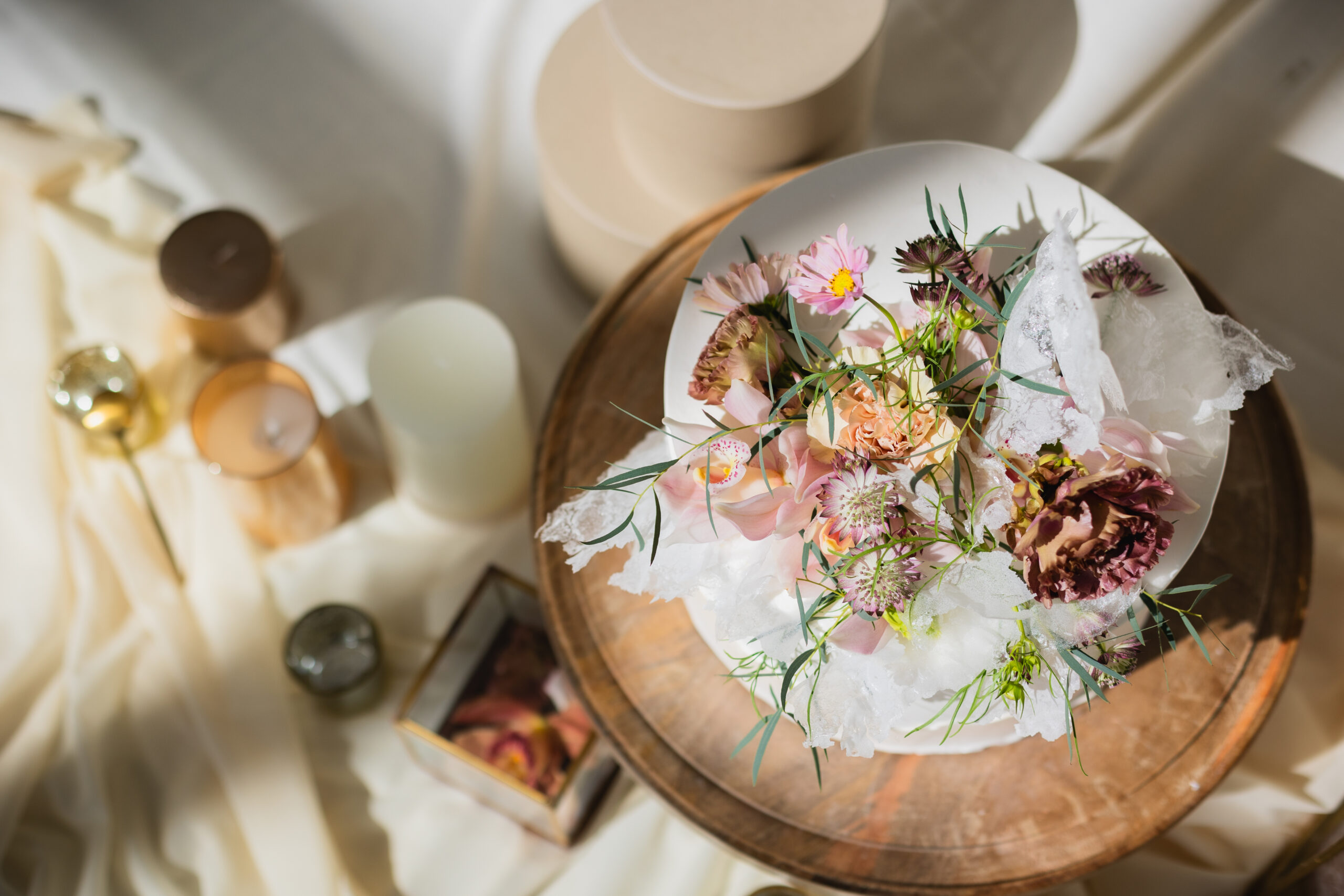 おふたりらしい色味のクリームに、季節のお花を合わせて