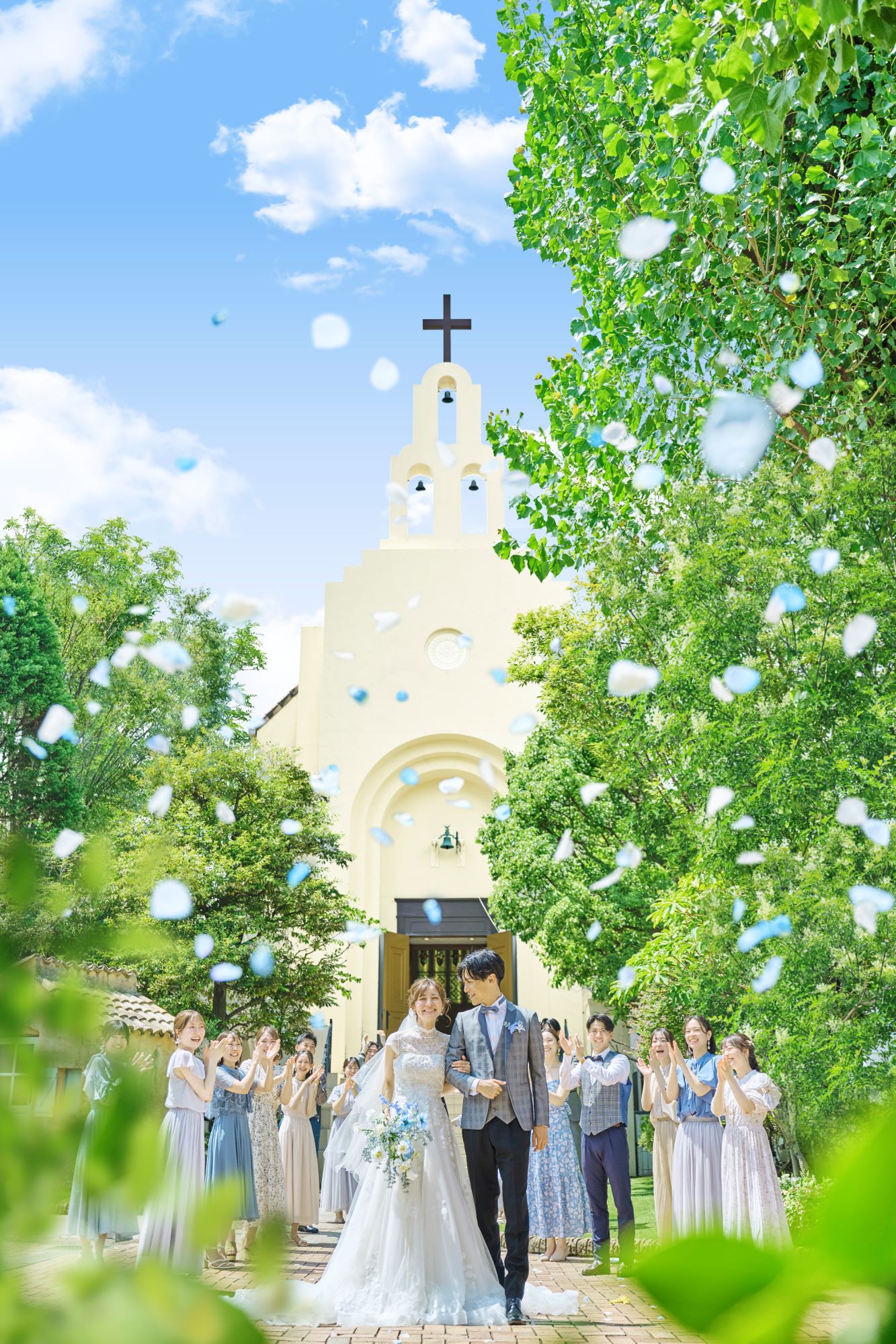 白亜の姿が青空に映える独立型チャペル「チャペル・メアリークロス」